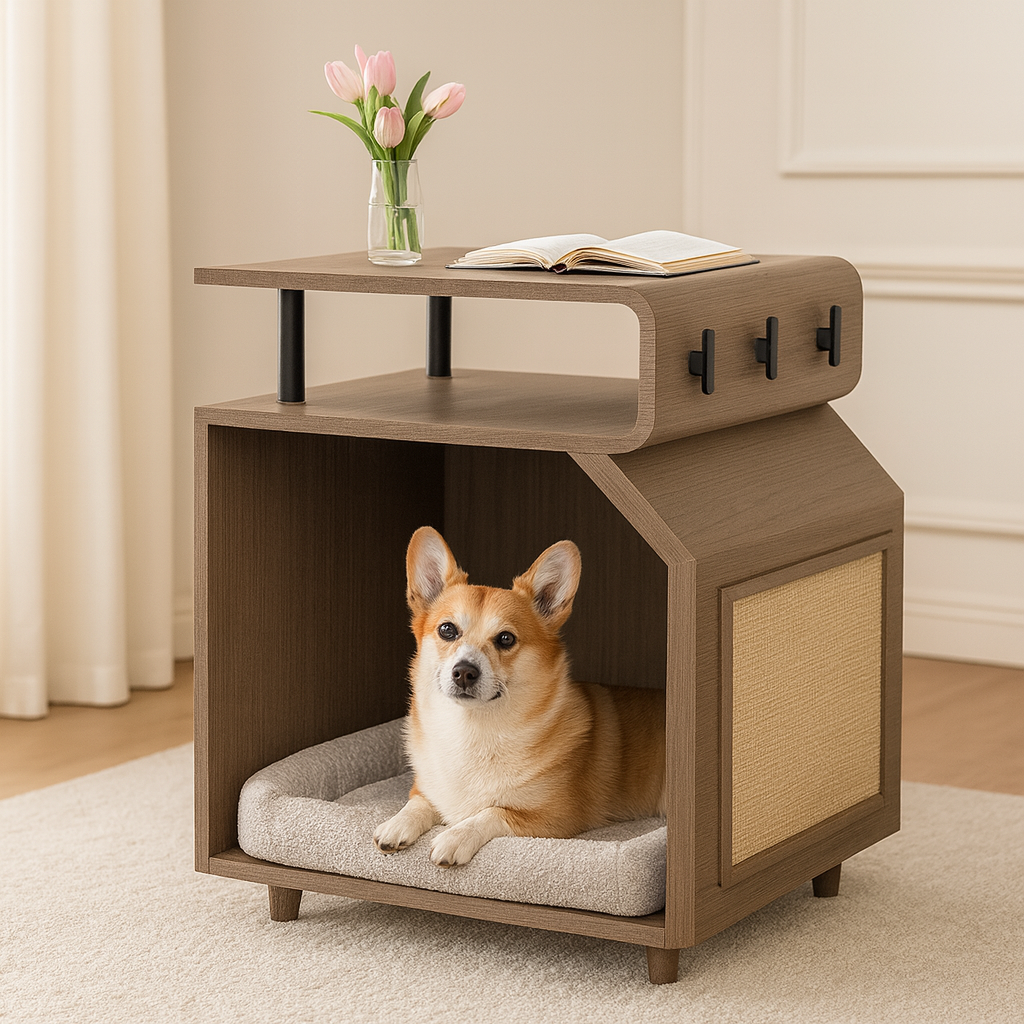 Domek Pysinożek™ to coś więcej niż legowisko – to elegancki mebel, który zdobi Twój dom i zapewnia pupilowi komfortowy kącik. Wykonany z naturalnego drewna, z miękką poduszką i boczną matą do drapania, łączy styl, funkcjonalność i wygodę.