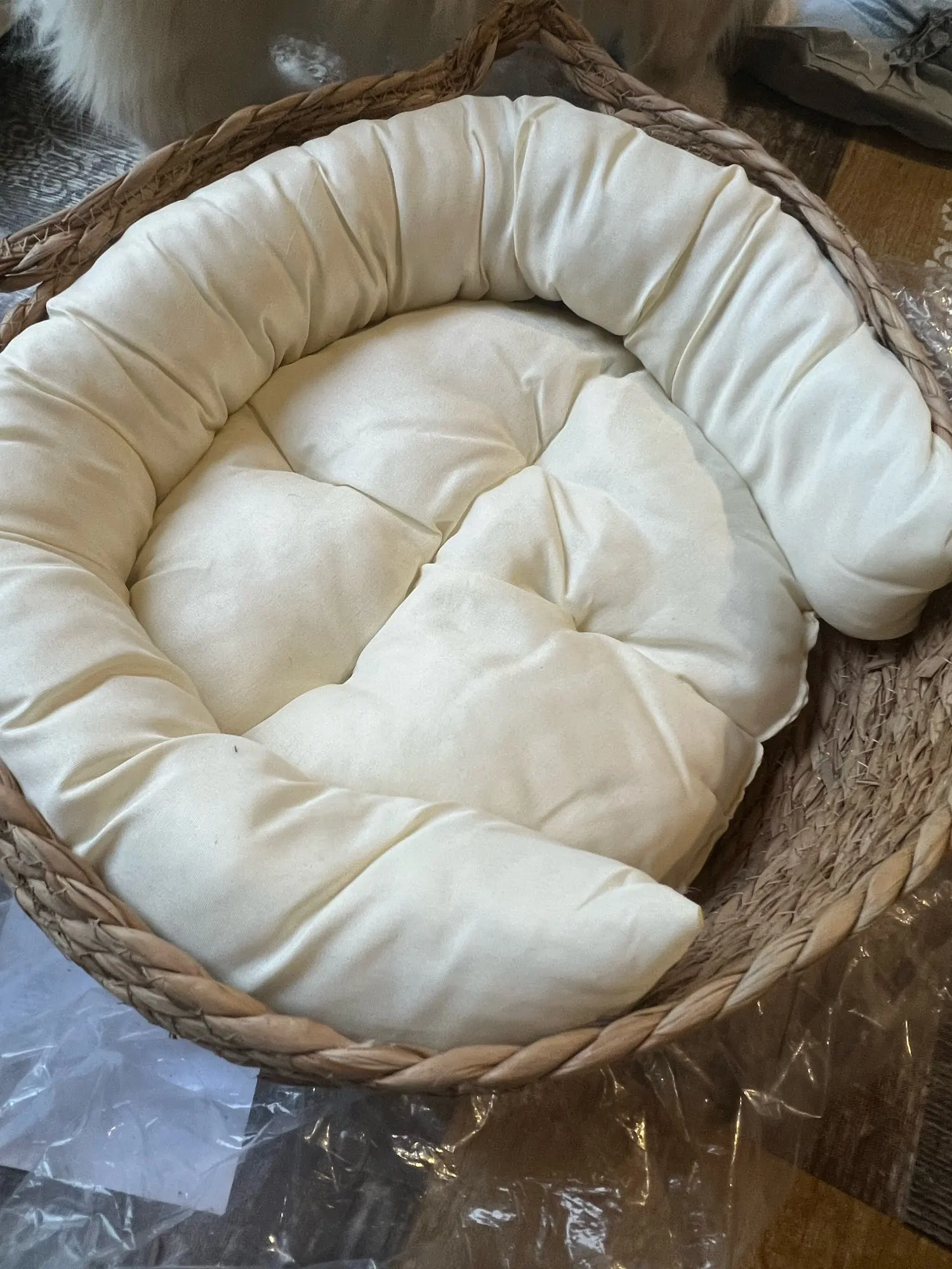 Twój kot zasługuje na naturalny komfort i ciepło przez cały rok. Legowisko Pysinożek™ jest ręcznie plecione z naturalnych włókien, dzięki czemu każde jest wyjątkowe i pełne uroku. Miękka, wyjmowana poduszka sprawia, że Twój pupil śpi wygodnie i bezpiecznie.