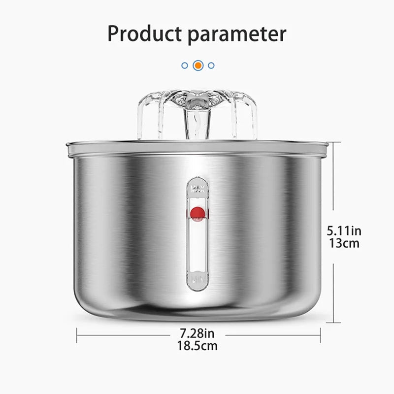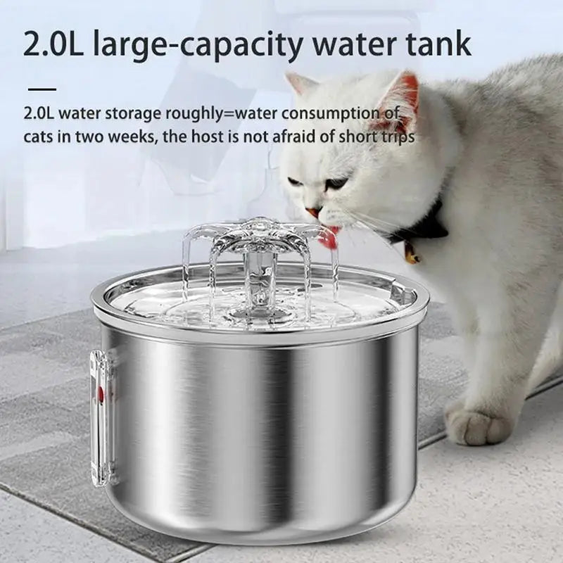 Pysinożek™ | Fontanna ze stali nierdzewnej 2 L – automatyczne poidełko dla kota i psa