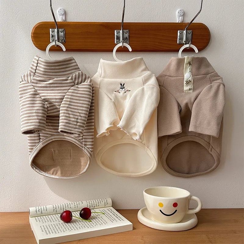 Największy atut tej bluzy? Spokój i ciepło Twojego malucha bez przegrzewania. To domowy „home wear” stworzony dla wrażliwych, drobnych pupili – miękki jak plusz, lekki i oddający nadmiar ciepła, żeby piesek lub kotek nie pocił się pod ubrankiem. Zakładasz ją po spacerze, przy wietrzeniu mieszkania albo podczas leniwego wieczoru na kanapie i czujesz, jak Twój zwierzak momentalnie się wycisza. Brak szorstkich szwów, delikatna dzianina i elastyczne wykończenia sprawiają, że nic nie drapie, nie uwiera i nie ciągnie futra. Krój nie krępuje ruchów, więc jest wygodnie przy zabawie i drzemce. A neutralne, skandynawskie beże z subtelnym haftem wyglądają tak estetycznie, że aż chce się robić zdjęcia 📸 – Twój salon i Twój Pysinożek™ tworzą razem ciepły, instagramowy kadr. 🐶🐱🤎